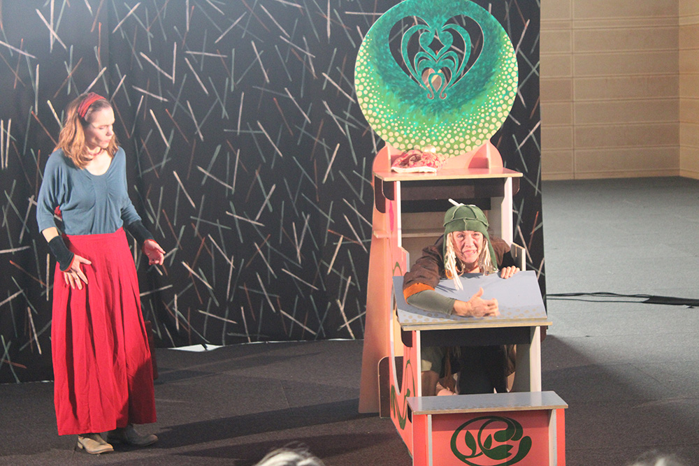 Mit großem Interesse verfolgten die Schüler der fünften und sechsten Klassen der Gemeinschaftsschule Sandesneben den Verlauf der Geschichte, bei der Geschlechterrollen in Frage gestellt und die eigene Selbstbestimmung mehr und mehr in den Fokus rückt. So war beim abschließenden Gespräch natürlich das Thema "Selbstbestimmung" von zentraler Bedeutung. Und noch eine Sache hatte das junge Publikum sehr beeindruckt: Ein Klatsch-Spiel faszinierte die Zuschauer so sehr, dass es am Ende nochmals als Zugabe vorgeführt werden musste. Kathrin Orth und Ellen Gottschlich beeindruckten dabei nicht nur mit ihrer Vielseitigkeit bei der Darstellung der verschiedenen Figuren, sondern auch mit ihren Gesangskünsten, sodass zum Finale beim Lied "Ich geh meinen Weg schräg" alle mitgingen und fröhlich mitklatschten.