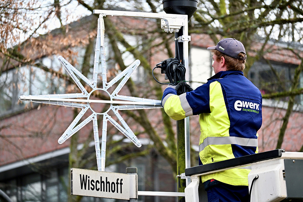 Insgesamt 55 leuchtende Sterne werden ab der 48. Kalenderwoche bis zur zweiten Januarwoche 2026 jeweils zu den Zeiten, in denen auch die Straßenbeleuchtung eingeschaltet ist, erstrahlen. Zum Einsatz kommt energieeffiziente LED-Technik, die den Energieverbrauch gering hält. Für das kommende Jahr ist geplant, die Weihnachtsbeleuchtung unabhängig von der Straßenbeleuchtung schalten zu können. „Für das e-werk ist dies eine tolle Möglichkeit seine technischen Kompetenzen im Bereich der Straßenbeleuchtung einzubringen“, äußert Moritz Manthey, Geschäftsführer vom e-werk Sachsenwald. „Wir freuen uns sehr dazu beitragen zu dürfen, noch etwas mehr Glanz in die besinnliche und festliche Weihnachtszeit zu bringen.“