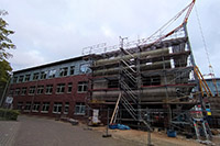 Büchen (LOZ). Der Rohbau des 7. Bauabschnitts an der Gemeinschaftsschule wächst zügig in die Höhe, nun sind bereits die Wände des zweiten Obergeschosses gestellt und auch die Verblendarbeiten sind im vollen Gange.