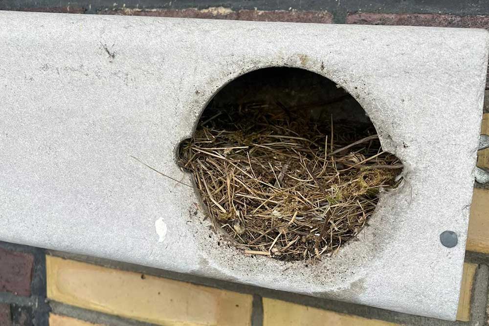 „Die Nistkästen der Mauersegler sind immer sehr gut belegt. Von den Mehlschwalben-Kästen waren vergangenes Jahr - soweit wir das sehen konnten – nur zwei besetzt, was sehr ungewöhnlich ist“, sagt Ulrike Stüber. Über die Gründe für das veränderte Nistverhalten könne nur spekuliert werden. „Vielleicht bevorzugen sie das neue Mehlschwalben-Hotel, das am Menzer-Werft-Platz aufgestellt wurde, oder ein anderes Quartier, in dessen Nähe es beispielsweise mehr Insekten gibt. Eine andere Möglichkeit ist, dass ihnen unsere Mehlschwalbenkästen zu voll waren, darum haben wir sie nun ausgetauscht.“ Denn die halbrunden Kunstnester haben nur eine kleine Öffnung, durch die die Schwalben einfliegen können. Das Reinigen beziehungsweise Ausräumen der Nisthilfen zum Saisonstart ist dadurch aber nicht möglich. „Teilweise hängen diese Nisthilfen seit 20 bis 30 Jahren hier am Rathaus. Über diese Zeit kann sich darin einiges Material angesammelt haben“, erklärt Ulrike Stüber, warum jetzt am Rathaus ein Steiger zum Einsatz kam. Die Firma Schomburg, die Experte für Baum- und Gartenpflegearbeiten ist, steuerte die künstlichen Nisthilfen auf Höhe des dritten Stocks an, tauschte die Quartiere für Mehlschwalben aus und reinigte die für Mauersegler. Denn anders als die für Mehlschwalben lassen sich die quaderförmigen Kästen für Mauersegler per Drehverschluss öffnen. „Die Kästen waren zum Teil komplett mit Nistmaterial gefüllt, das offenbar andere Vogelarten dort hineingebracht haben. Meisen und Spatzen versuchen zum Teil die Quartiere der Mauersegler zu übernehmen“, erklärt Ulrike Stüber, die nun die regelmäßige Reinigung der Nisthilfen etwa alle fünf Jahre plant. „Das könnte auch aus einem anderen Grund sinnvoll sein. In den Kästen haben wir nämlich auch kleine braune Kügelchen gefunden, bei denen es sich um die Puppen der Mauerseglerlausfliegen handelte. Das sind Parasiten, die in den Kästen überwintern und dann im nächsten Frühjahr die wieder ankommenden Vögel befallen.“