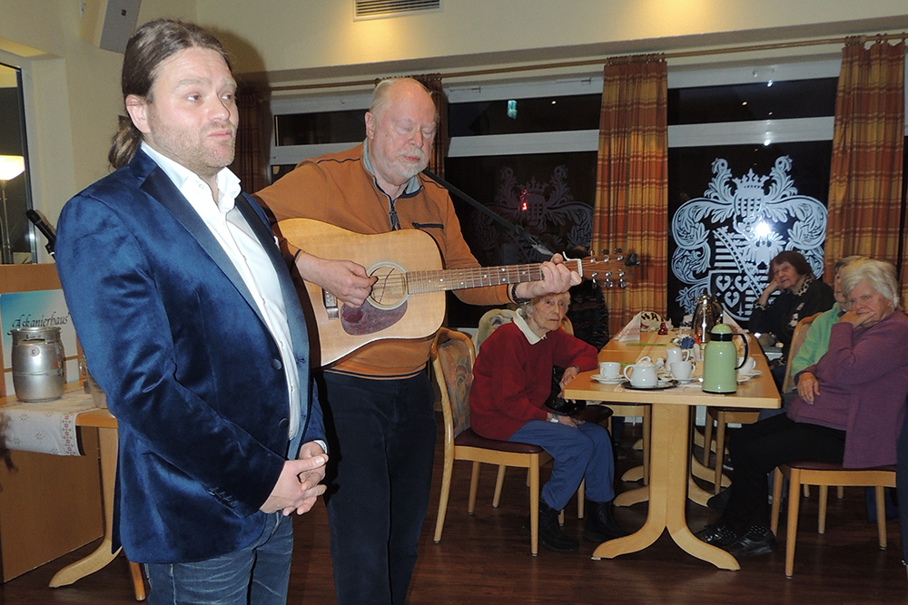 Advent und Weihnachten beschert den Senioren bei dieser Gelegenheit dazu ein besonderes Programm: der Kreis der Mitwirkenden ist seit Jahren auf Wunsch des Publikums derselbe geblieben: zunächst Peter Paulsen, der Lauenburger Barde mit seiner Gitarre und dem umfangreichen Repertoire an Liedern und Döntjes, Ingrid Bindzus, als Plattdeutsch-Beauftragte auch hier wieder in beiden Mundarten unterwegs und Holger Peter Reimer aus Büchen, in vielen Sätteln gerecht und auch in Lauenburg als ehemaliges Beiratsmitglied hier immer noch geschätzt. Neu in diesem Kreis der Vortragskünstler ist Rico Endler, ein Lehrer und Hobby-Sänger, der mit seinem Gesang das Publikum immer wieder zu Beifall hinreißt, weil er außer Weihnachtsliedern dazu auch Operettenklänge bieten kann.