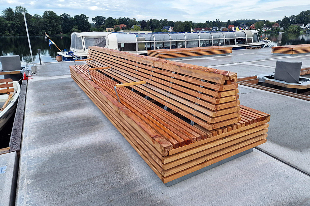 Die Fertigstellung des Stegs wird durch die Neugestaltung des gesamten Uferbereichs ergänzt, inklusive bepflanzter Terrassen, Freiflächen und moderner Ausstattungselemente. Diese Arbeiten konnten bereits im Sommer 2024 abgeschlossen werden.
