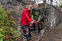 Mölln (bm). Das historische, handgeschmiedete Treppengeländer am südöstlichen Aufgang der St. Nicolai-Kirche in Mölln ist nach fast zwei Jahren Restaurierungszeit zurück an seinem Platz. Mit dem symbolischen Durchschneiden eines roten Bandes wurde das rund 400 Jahre alte Geländer nun feierlich wieder eingeweiht. Die aufwendige Restaurierung wurde durch fachkundige Handwerksarbeit und großzügige finanzielle Unterstützung ermöglicht.