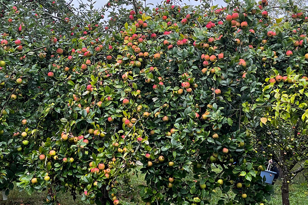 Beim Apfeltag können sich Kenner und Informationssuchende in bester Umgebung austauschen. Unter den vielen Bäumen auf den Anlagen und dem Redder wachsen 56 verschiedene Apfelsorten. Kennenlernen kann man außerdem Birnen, Kirschen, Quitten, Hunderte Gehölze von ganz alten bis sehr jungen Pflaumen-, Kirschpflaumen- und Schlehensippen sowie Pfirsich, Kornelkirsche, Fliederbeere, Deutsche Mispel und Esskastanie. Wie üblich wird reichlich Obst kostenlos abgegeben.